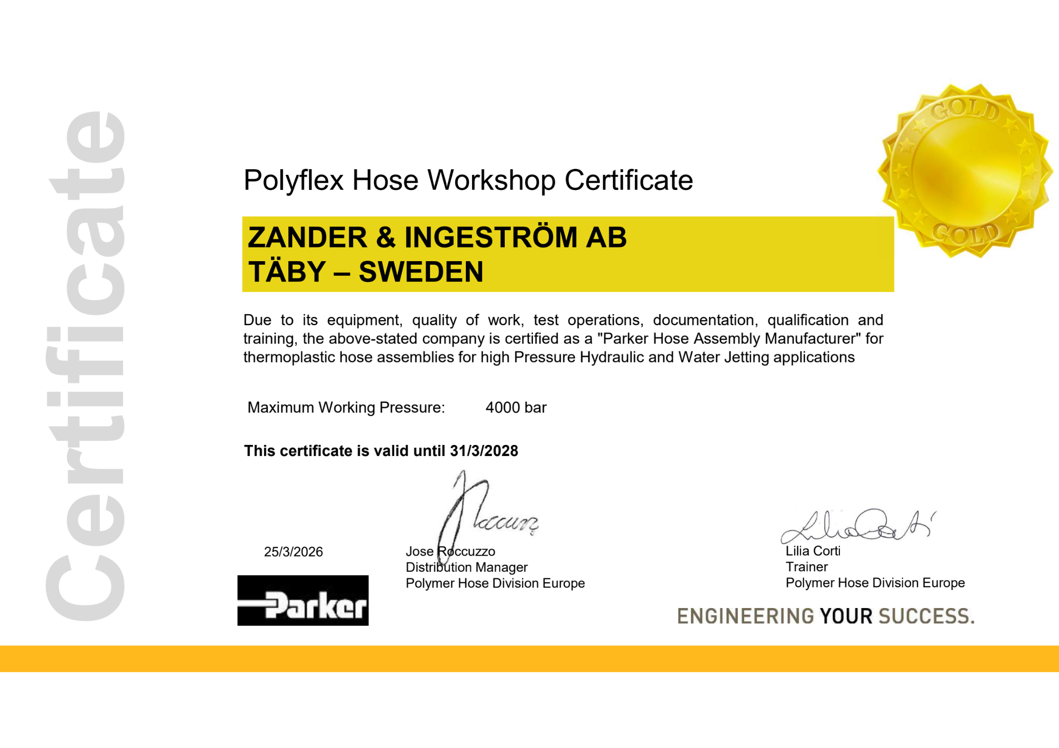 I vår verkstad pressar vi högtrycksslangar i valfri längd och självklart provtrycks varje slang och certifieras.